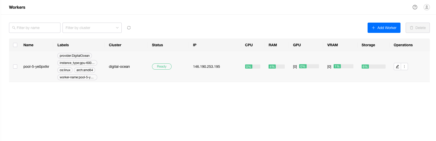 - Delete the workers as needed. The corresponding droplets will be deleted accordingly.