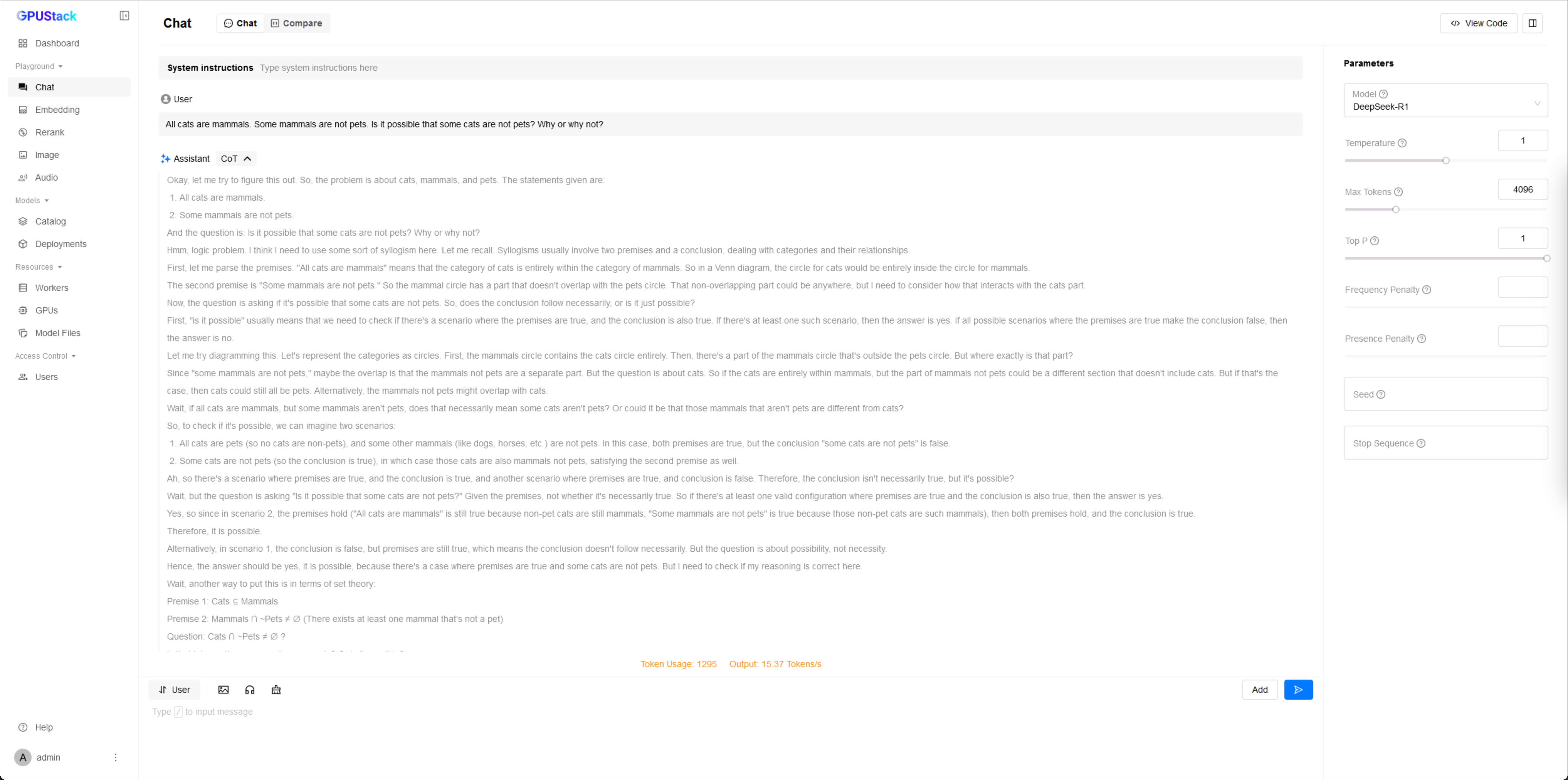 Once the model is deployed and running, you can test it using the GPUStack Playground.