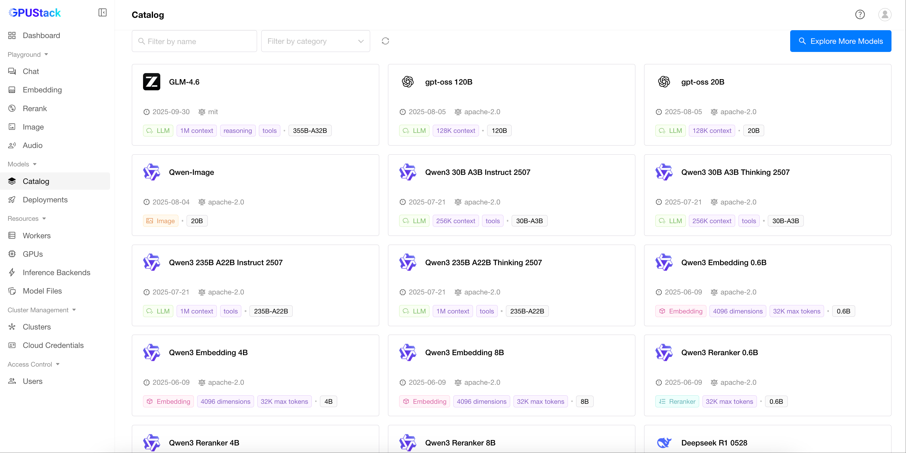 You can customize the Model Catalog by providing a YAML file via GPUStack server configuration using the --model-catalog-file flag. It accepts either a local file path or a URL. You can refer to the built-in model catalog file here for the schema.