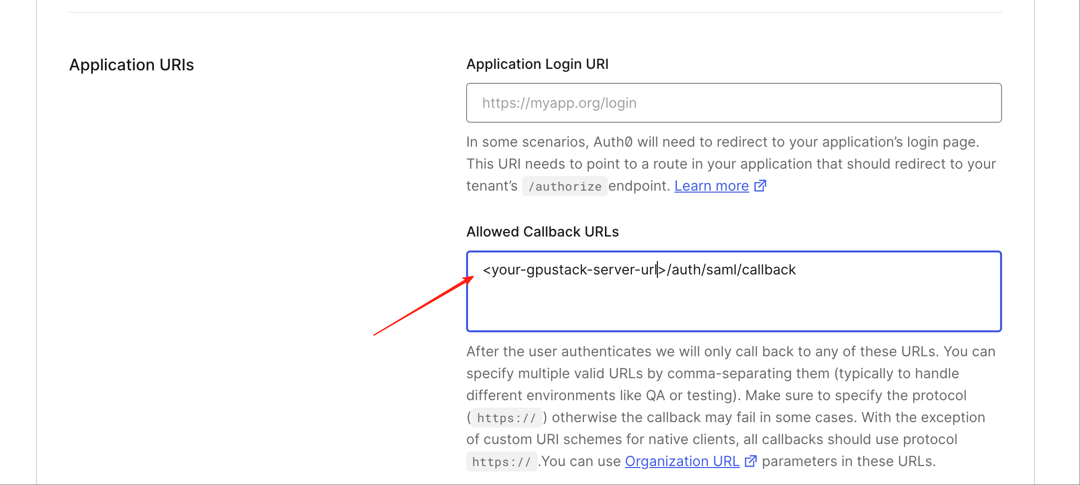 -e GPUSTACK_SAML_IDP_SERVER_URL="<auth0-saml-protocol-url>" \