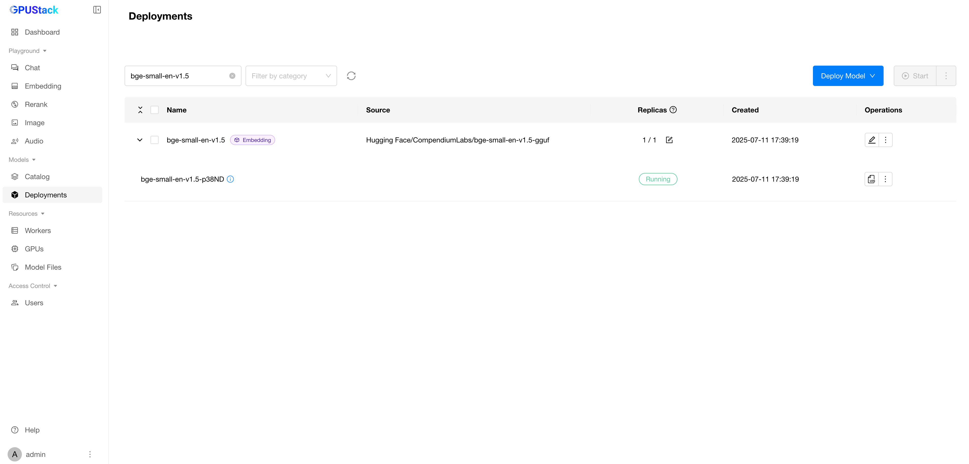 Deploymentspage in the GPUStack UI. - Click the