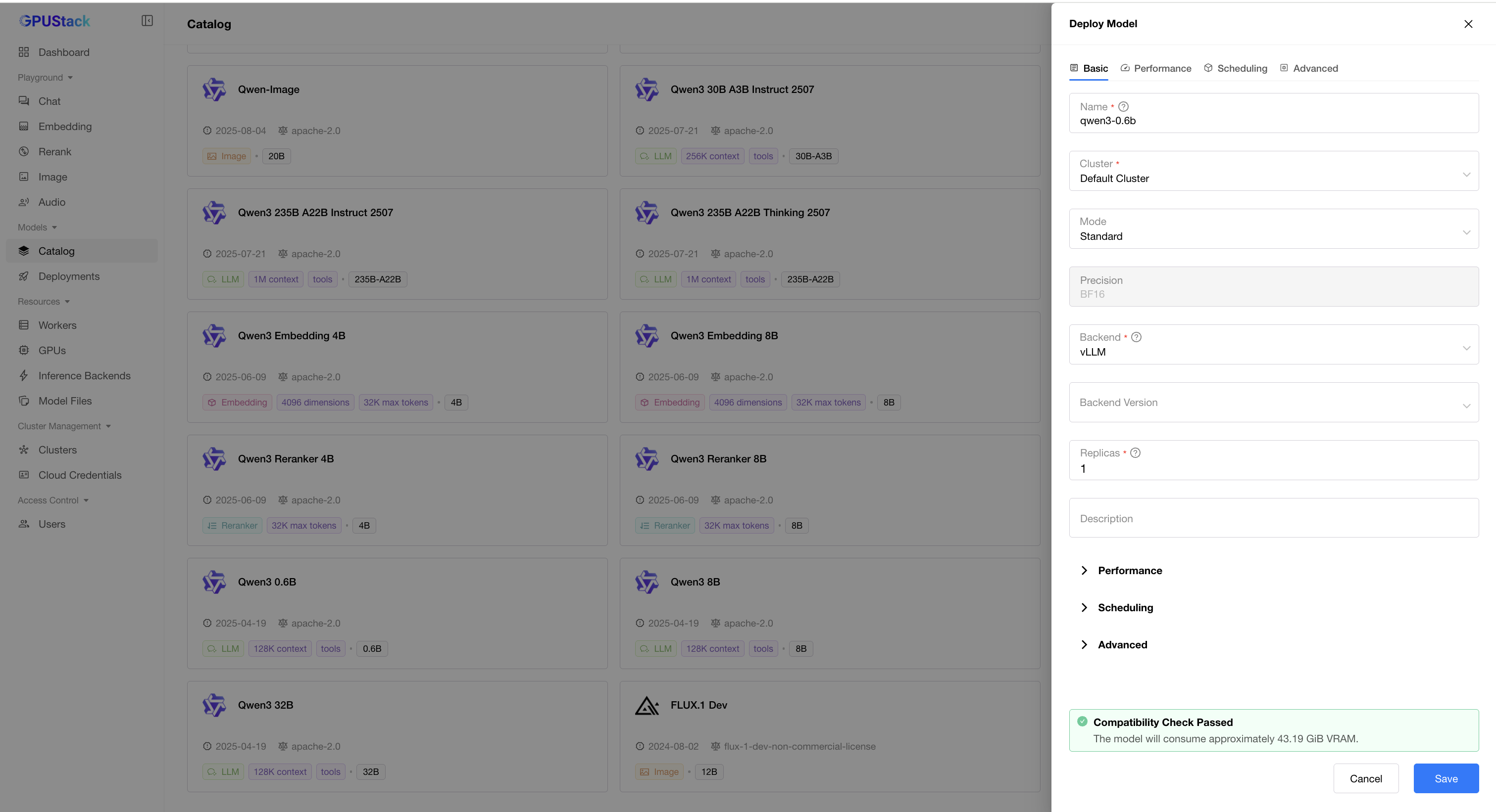 Catalogpage in the GPUStack UI. - In the model list page, use dropdown to filter with
