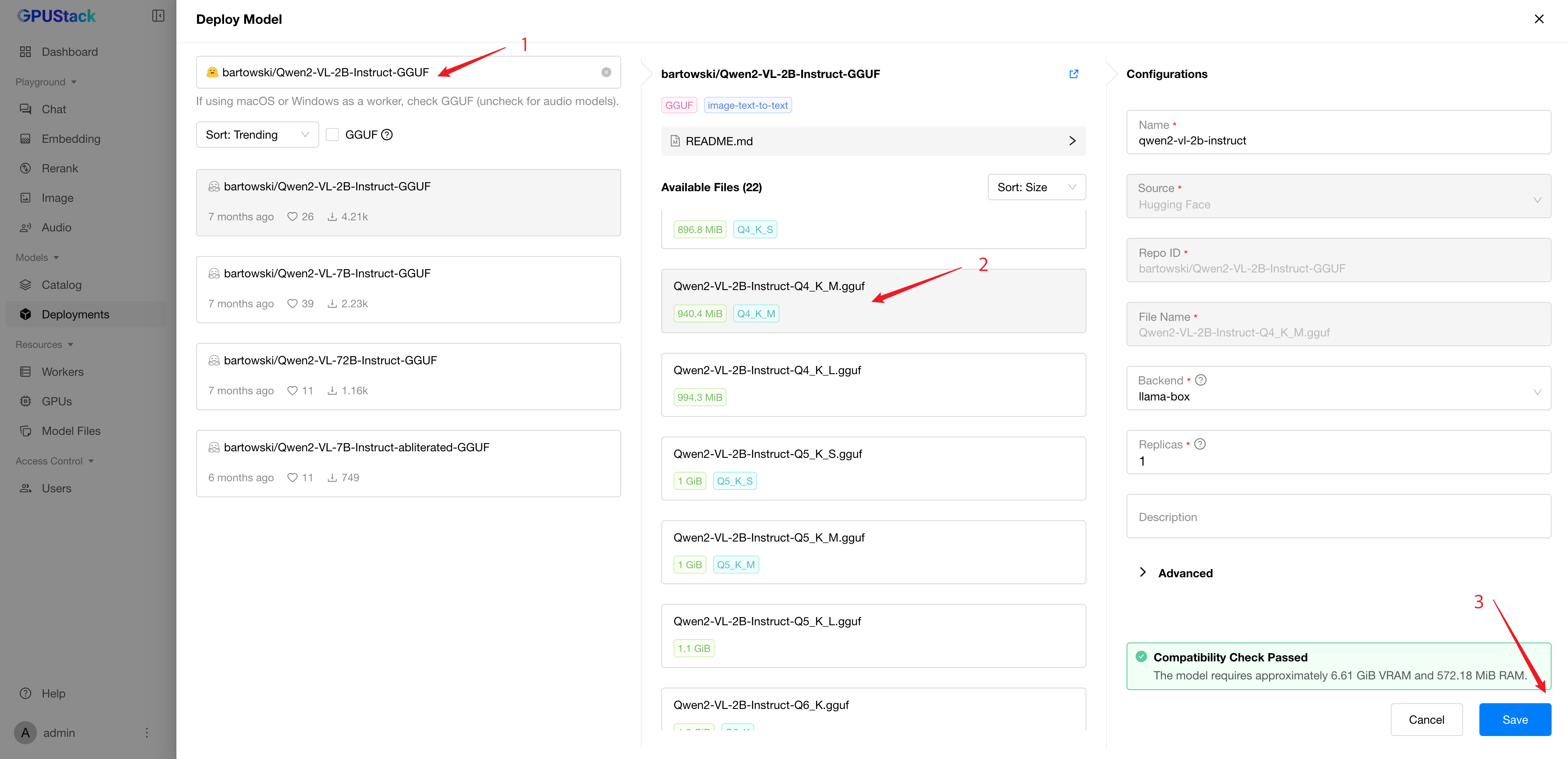 2. Enable the GGUF checkbox to filter models by GGUF format.