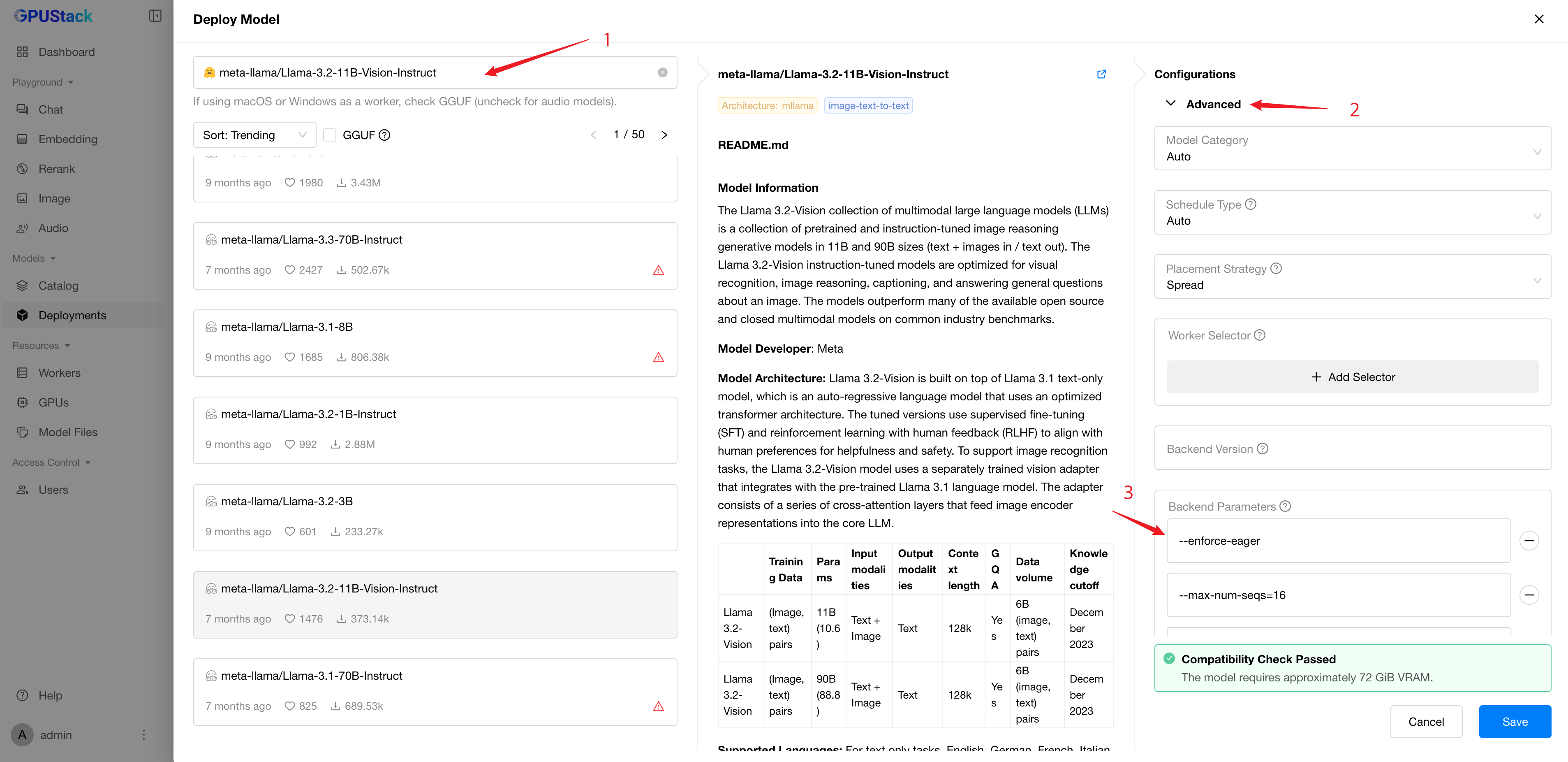 The procedure for deploying and interacting with these models in GPUStack is similar. The main difference is the parameters you need to set when deploying the models. For more information on the parameters you can set, please refer to Backend Parameters .