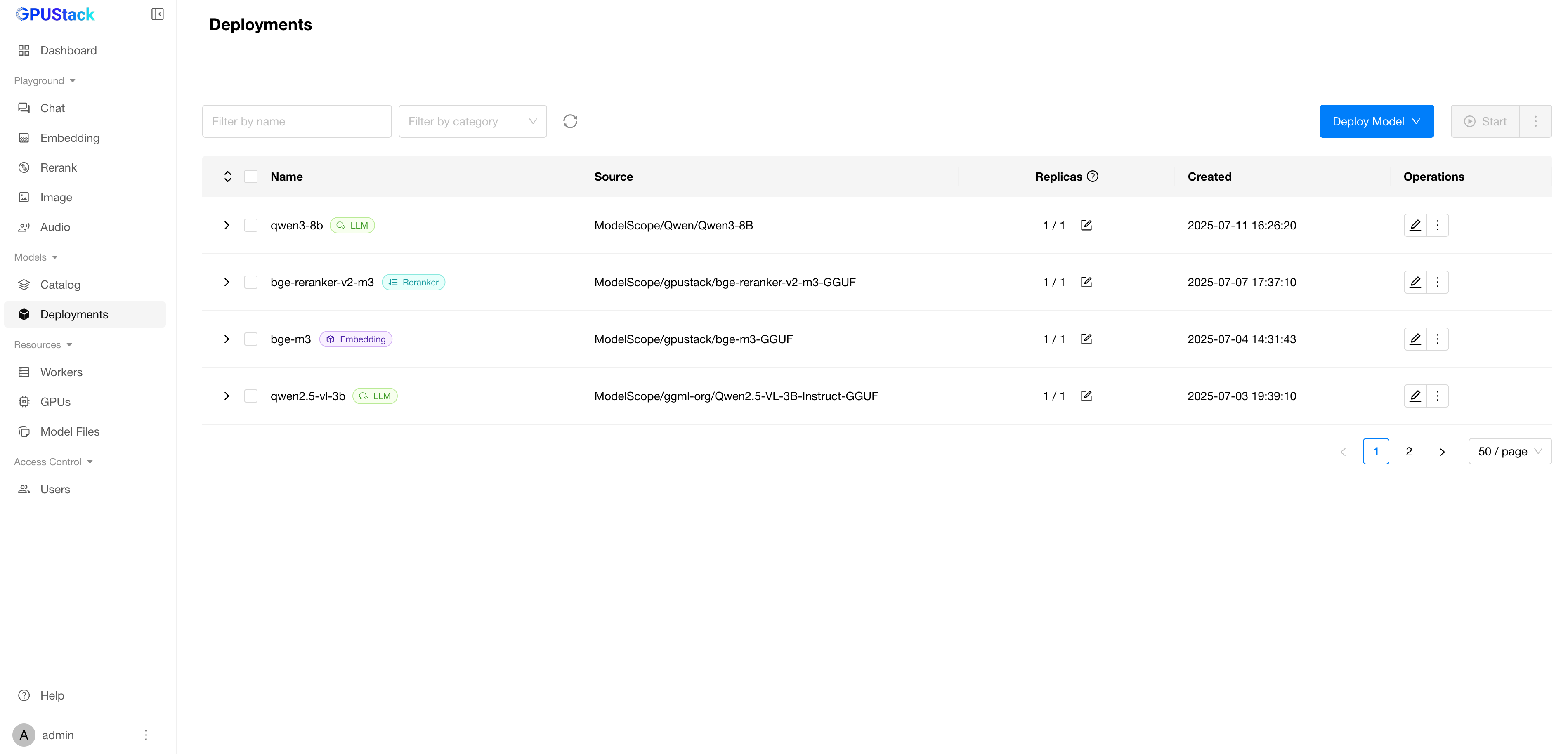 Deploymentspage and click onDeploy Modelto deploy the models you need. Here are some example models: