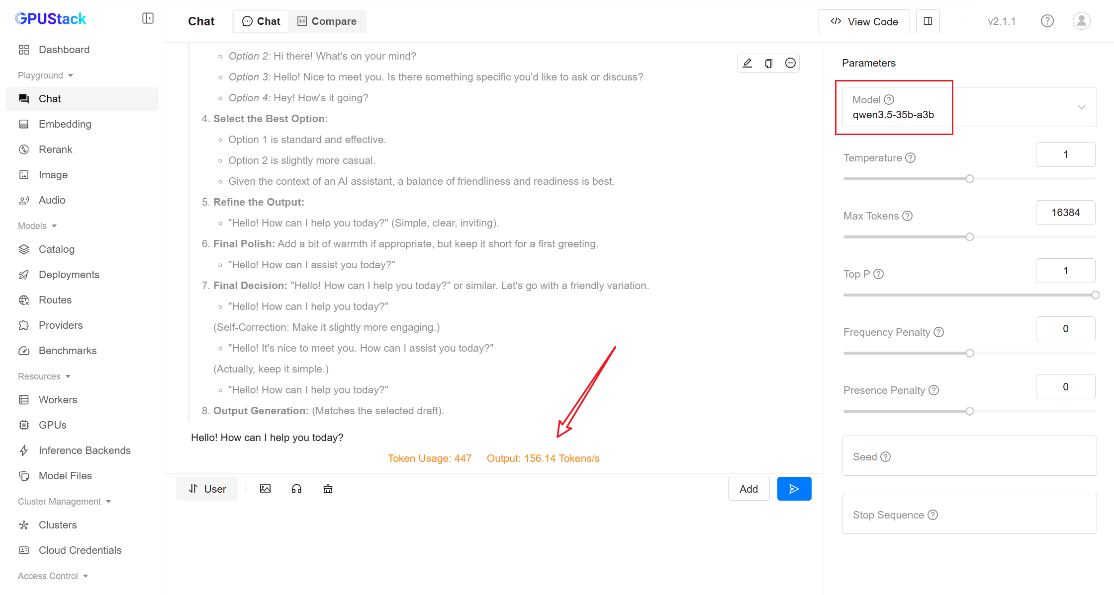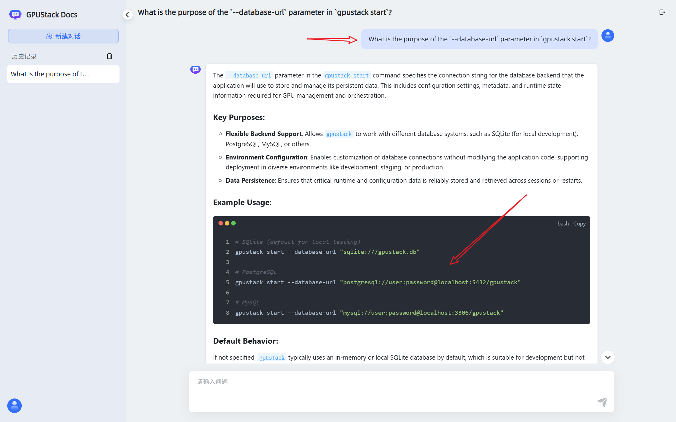 The assistant can now answer questions based on the connected knowledge base and models deployed on GPUStack.