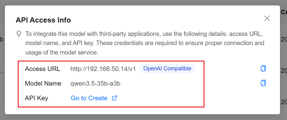 API URL and API Key fields will appear after entering the Base Model and pressing Enter.