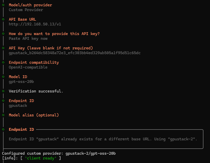 Fill in the information provided by GPUStack as prompted: