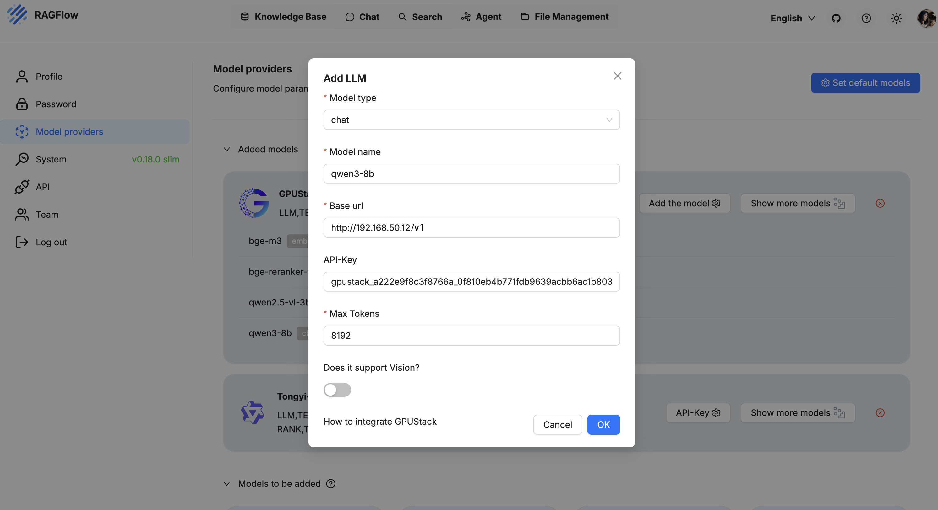 Integrating GPUStack into RAGFlow