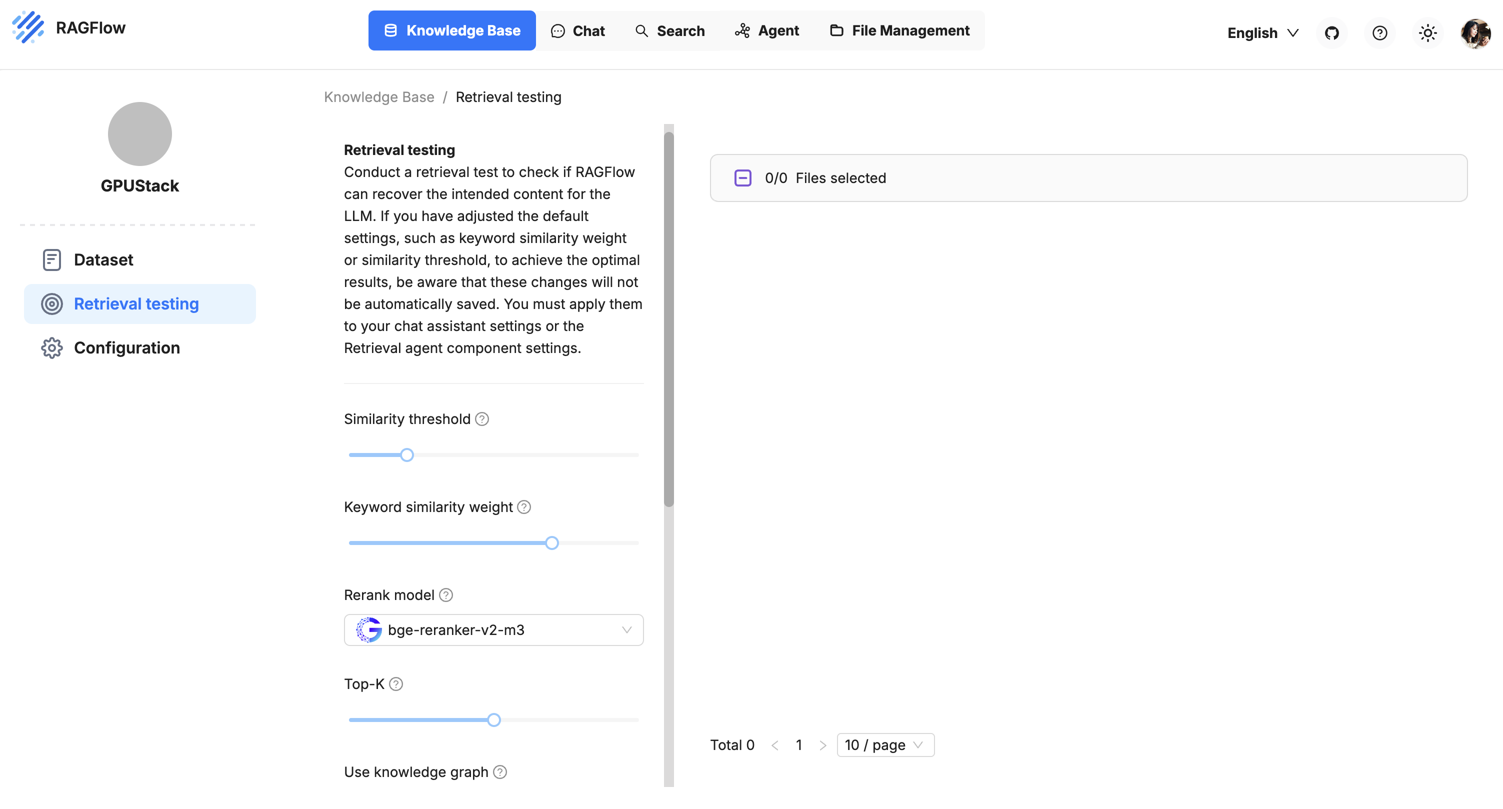 Retrieval testingand set the rerank model tobge-reranker-v2-m3: