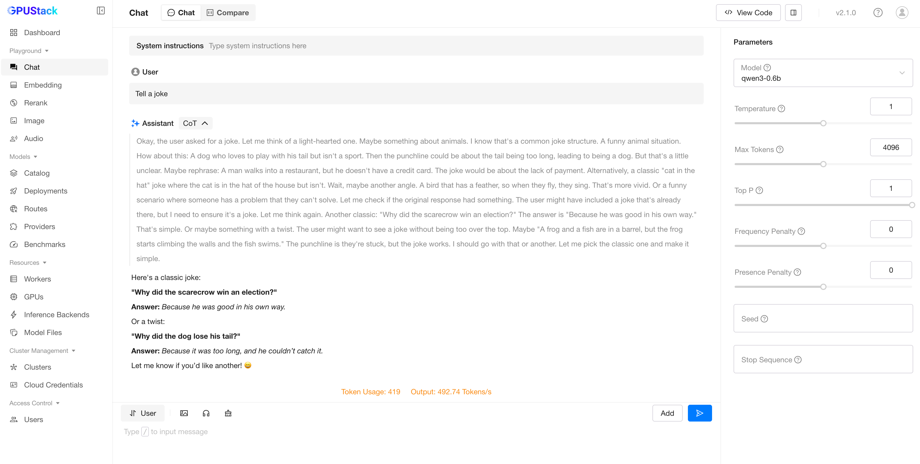 On the GPUStack UI, navigate to the