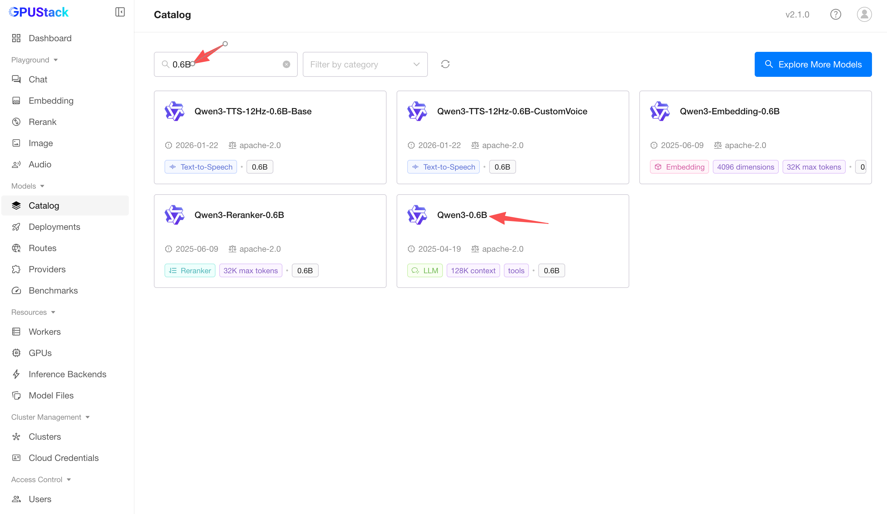 Catalogpage in the GPUStack UI. -