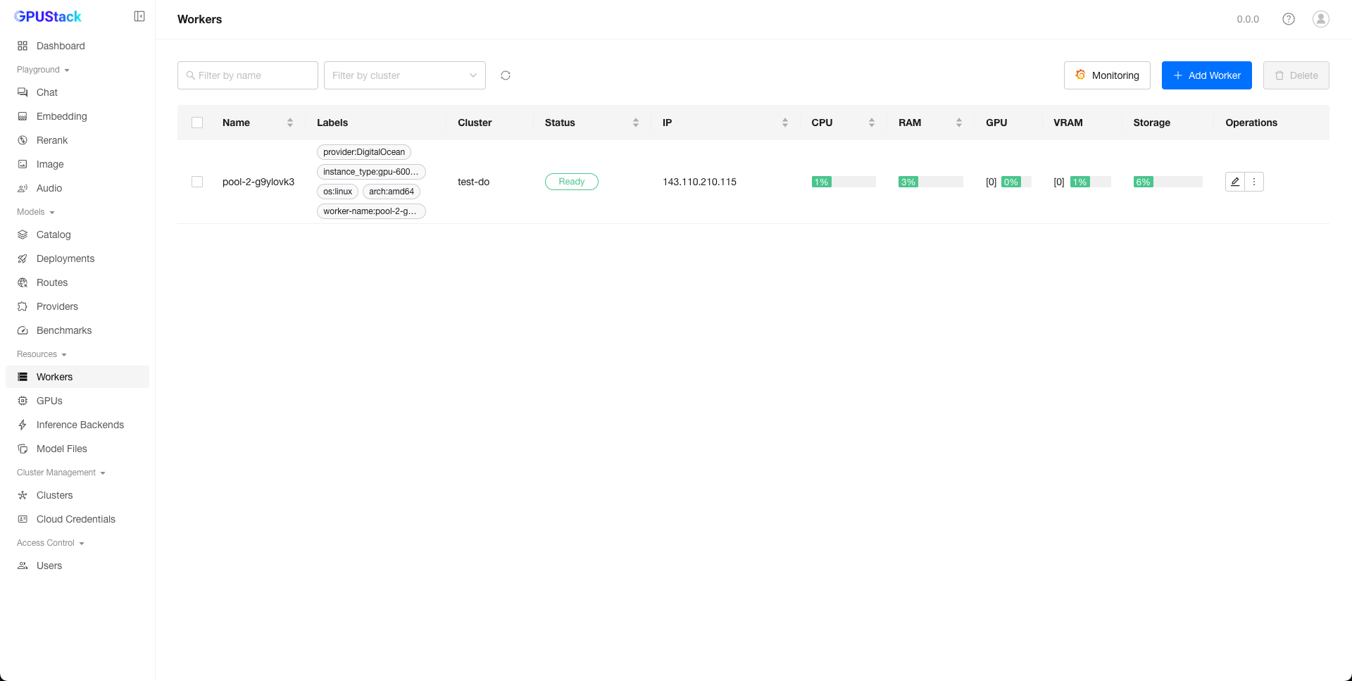 Once the worker reaches the Ready status, you can deploy models on it.