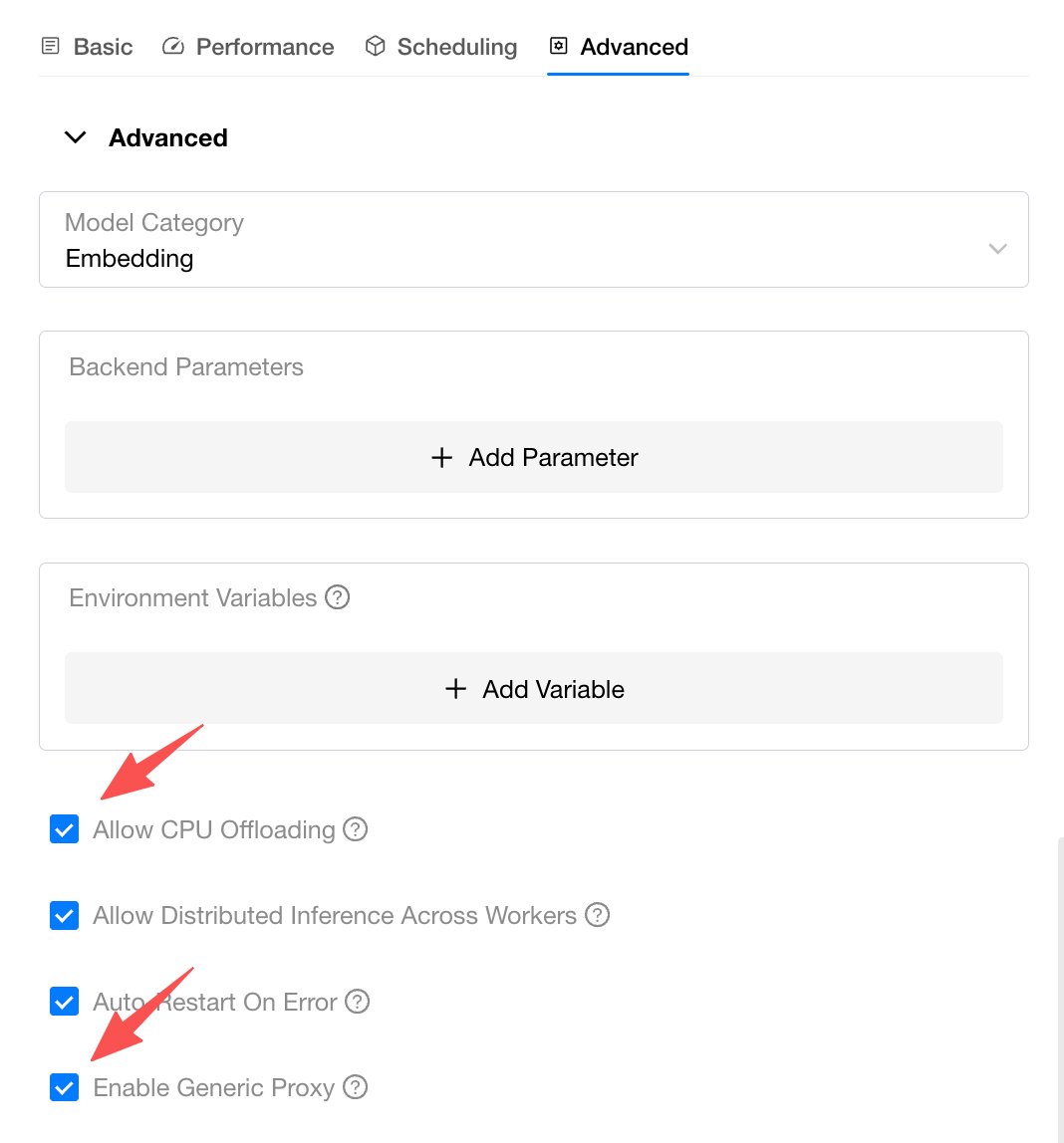 When CPU offloading is enabled, GPUStack will allocate CPU memory if GPU resources are insufficient. You must correctly configure the inference backend to use hybrid CPU+GPU or full CPU inference.