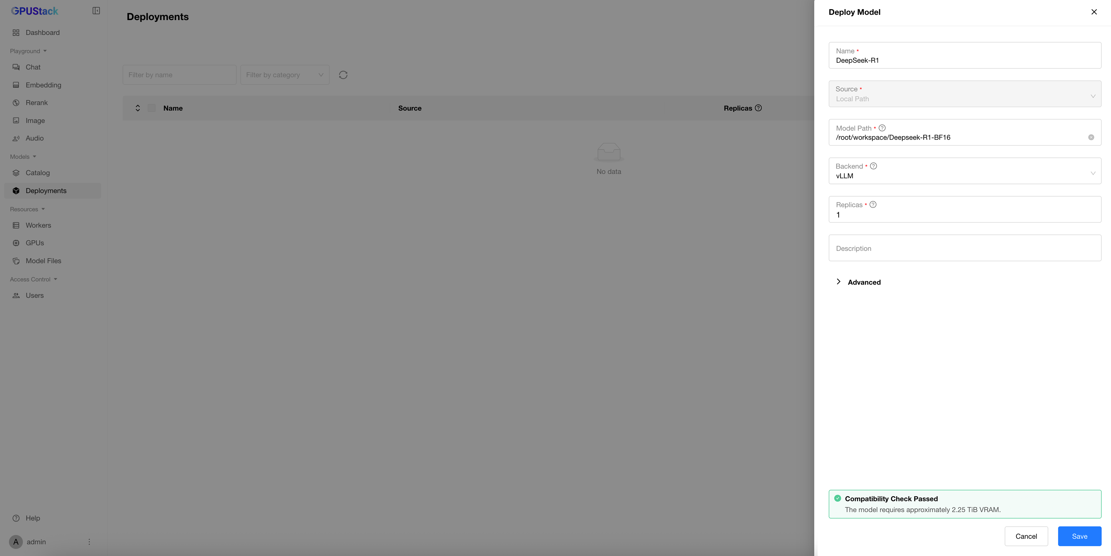 Login to the GPUStack UI using the admin user and the obtained password.
