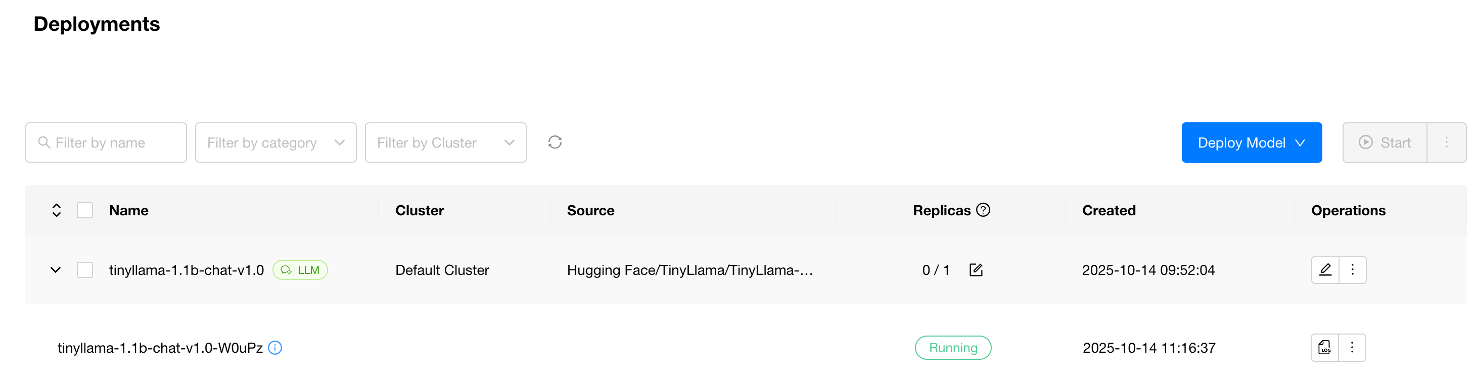 On the Deployments page, select the newly added backend and deploy the model.