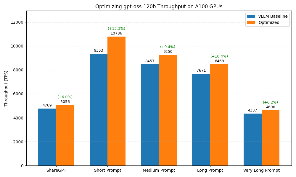 Optimizing GPT-OSS-120B Throughput on NVIDIA A100 GPUs